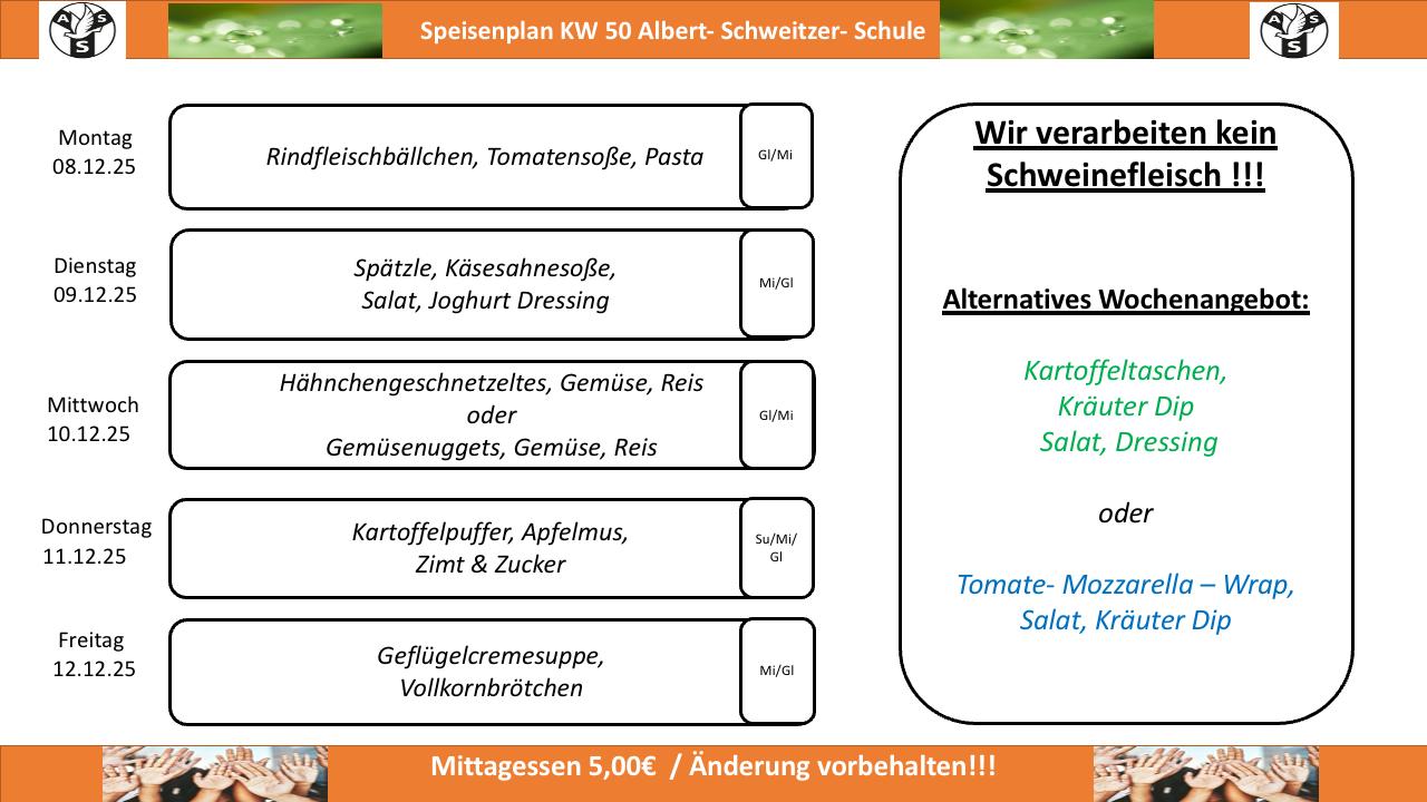Speiseplan Woche ab 08.12.2025